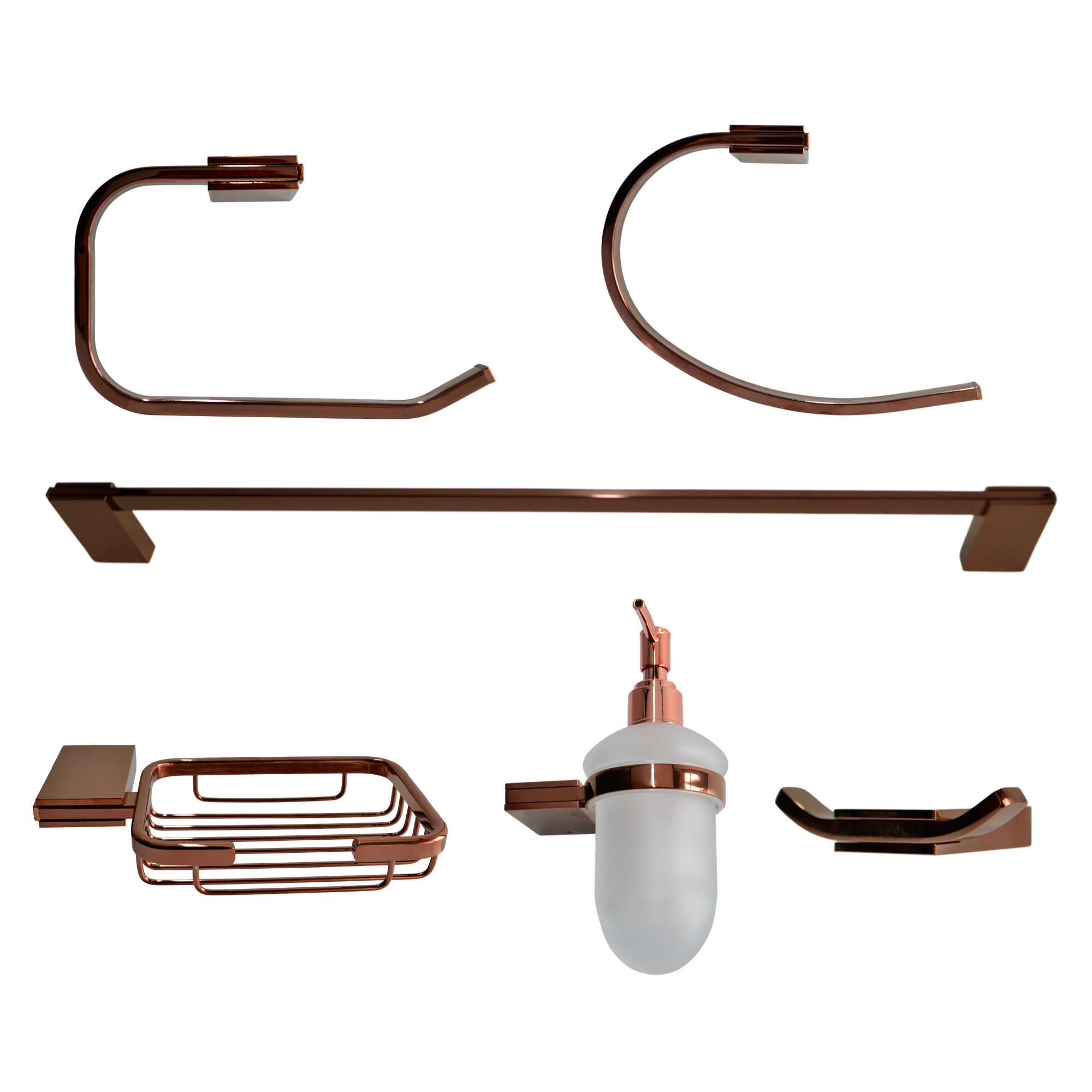 INCLUYE: PAPELERA, PERCHERO, TOALLERO REDONDO, DISPENSADOR DE JABON, JABONERA, TOALLERO LARGO