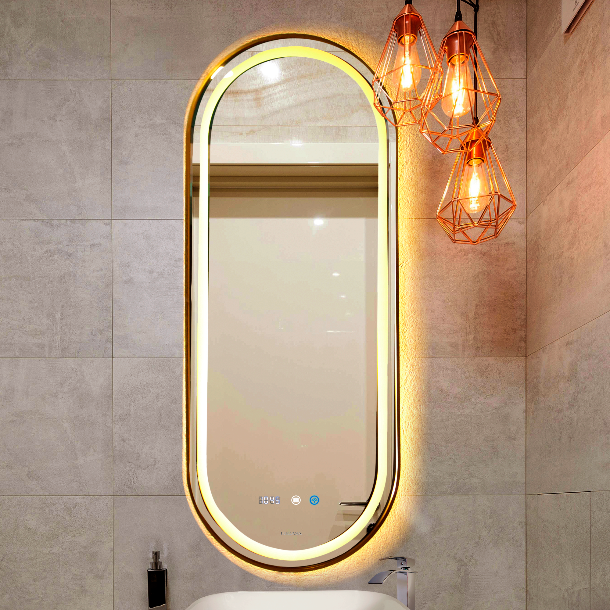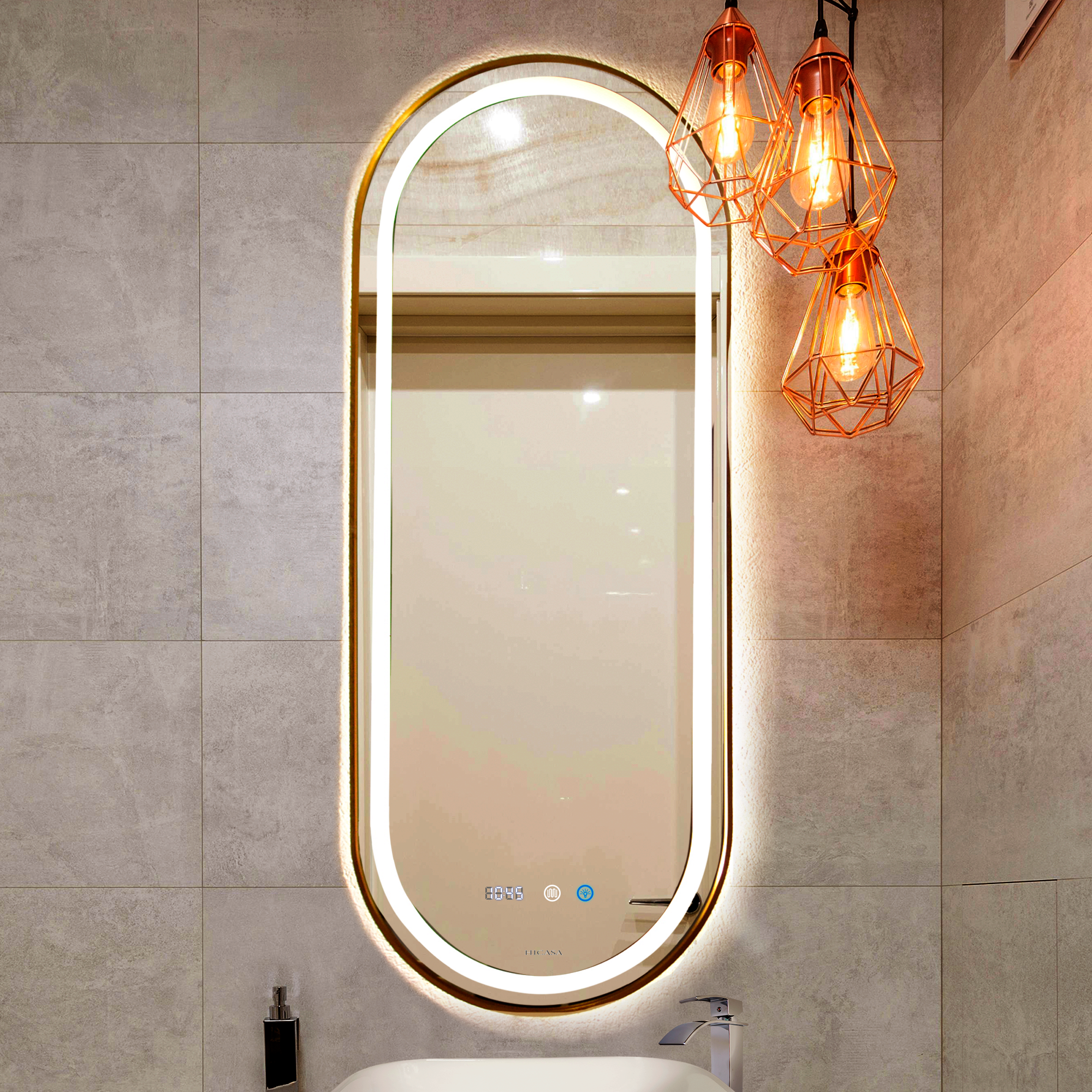 ESPEJO LED CON MARCO DORADO - K321D-1