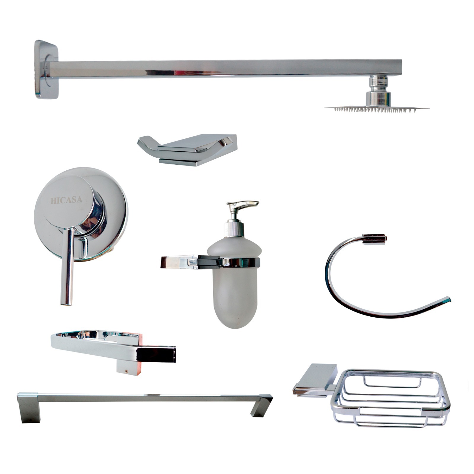 INCLUYE: PAPELERA, PERCHERO, TOALLERO REDONDO, DISPENSADOR DE JABON, JABONERA, TOALLERO LARGO